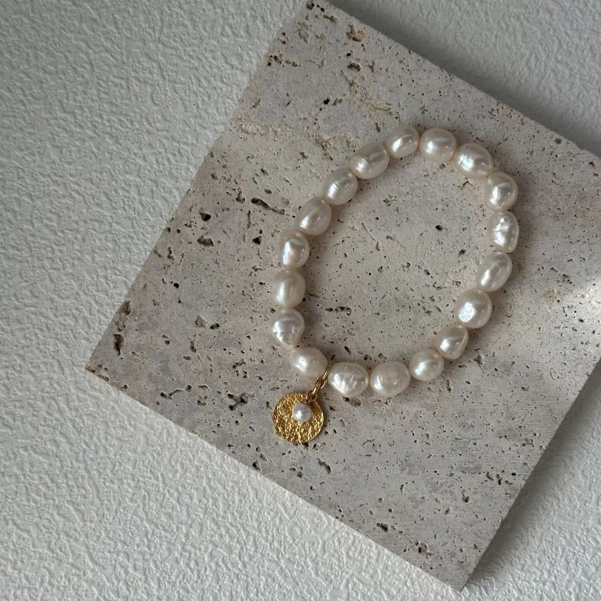 Small gold coins freshwater pearl bracelet | high-end retro natural alien pearl bracelet simple and versatile